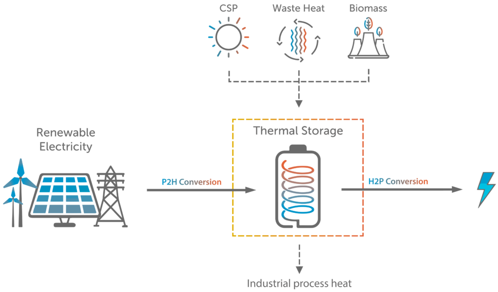 These batteries operate by converting electricity into thermal exergy, storing the thermal energy in inexpensive media (e.g., rocks, molten salts) for later conversion back to electricity. Additionally, Carnot Batteries open new possibilities for integrating power and thermal energy management. According to the International Energy Agency – Energy Conservation through Energy Storage (IEA-ECES), Carnot Batteries hold substantial promise in advancing energy storage technologies.